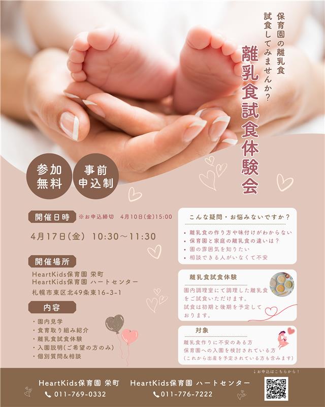 入園見学+離乳食試食+相談会を一緒に体験できるイベントを開催します♪